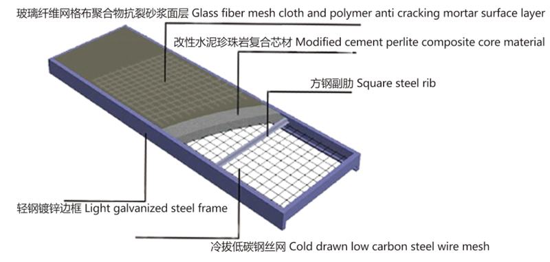 自重轻:由于采用轻质材料,板自重0.36-1.2KN/㎡,仅为传统钢筋混凝土做法的30-50%。